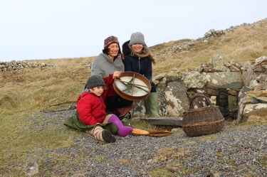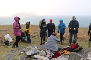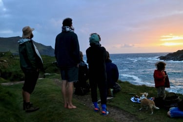 I have worked as a ritual celebrant since first rediscovering the Celtic Wheel in 2016. I began to hold ceremony on the fire festivals for community at sacred sites around Corca Dhuibhne, then at places nationally. Lately at the Puca Festival. With Wild Irish Retreat, I facilitate sweatlodges and other spontaneous rituals for the preservation of the language. . Later I held women's circles on the full moon. Then the invitations from women crossing thresholds, expectant mothers; a welcoming of new souls. A naming ceremony. A ritual for the 6th class children of Lios na nóg who were about to enter into secondary.