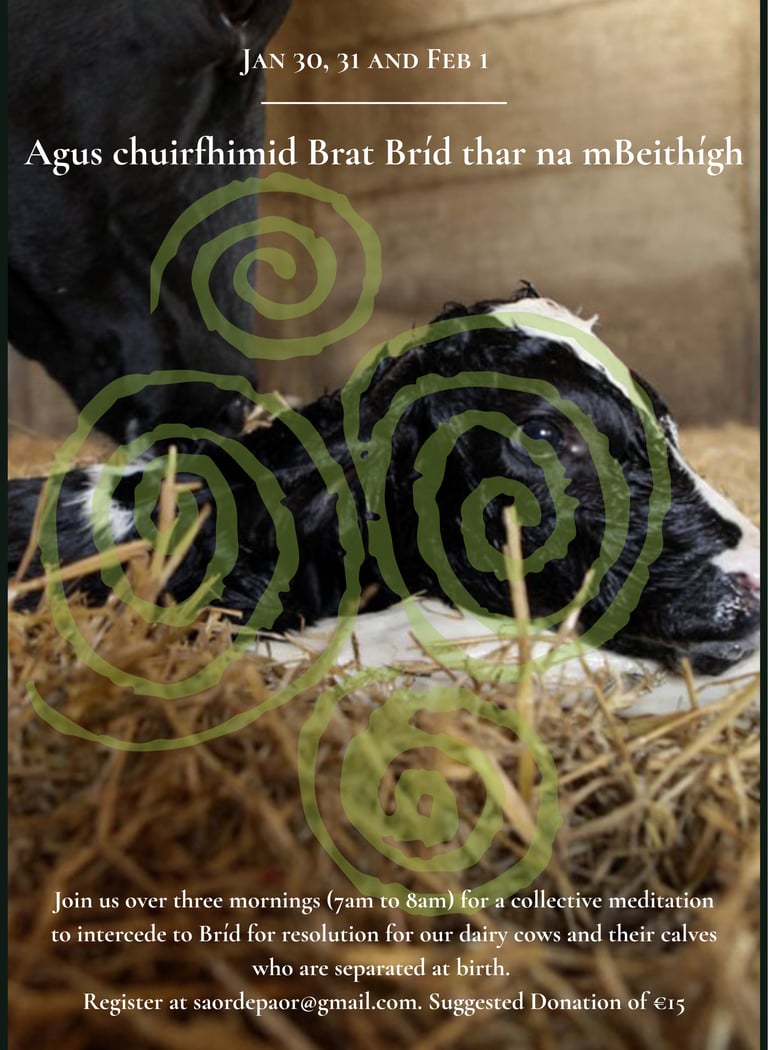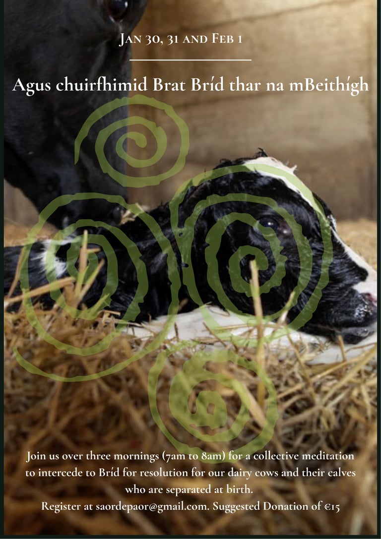 On Feb 1st morning, we will place the physical brat Bríd over the cows in ritual. You can join one or all three of these meditations.