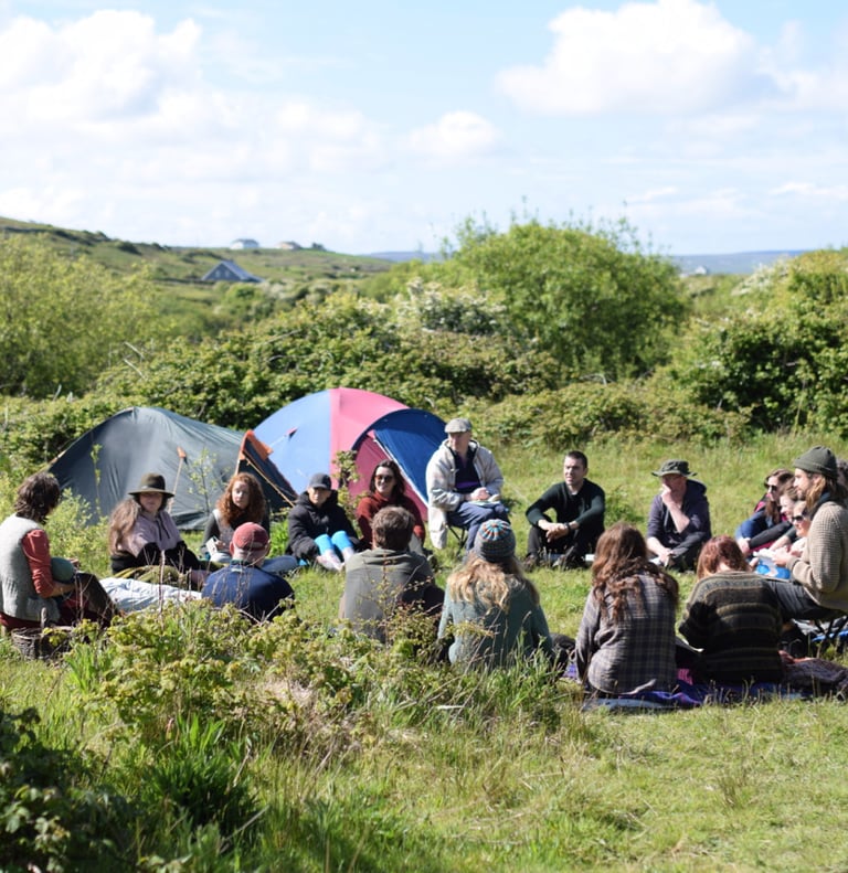Wild Irish Retreat is a space to reconnect with our language and land. It is a space to rediscover our ancestral skills and rituals. Each retreat is unique with either a ceremonial sweatlodge or a particular skill such as deer hide tanning to the fore. And Irish weaving the thread.